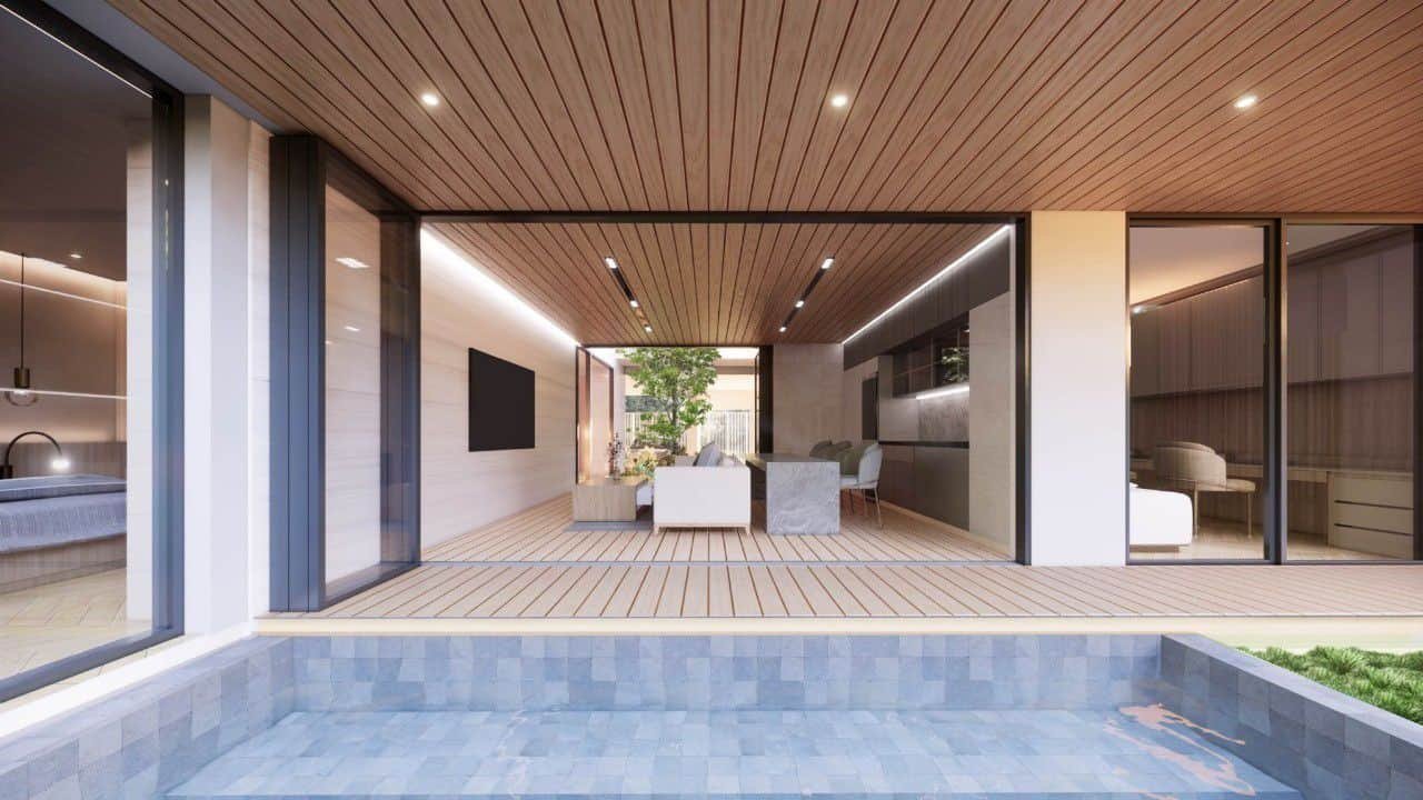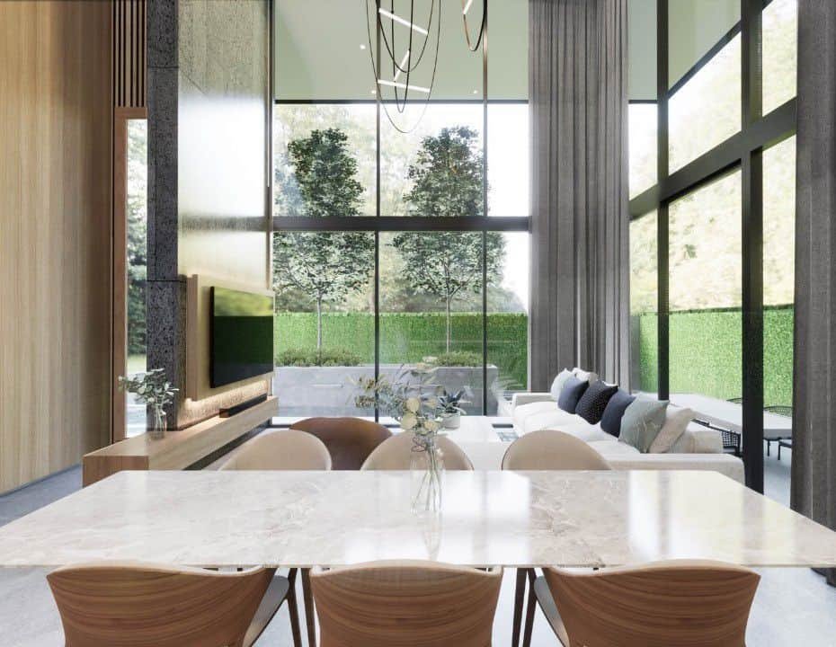 Each villa at Season Rosewood showcases stunning contemporary architecture, highlighted by large windows that flood the interiors with natural light. The thoughtful design includes spacious two-story layouts, private balconies, and inviting outdoor seating areas, making it an ideal setting for relaxation and entertaining guests. Experience the beauty of your landscaped surroundings from the comfort of your own home.