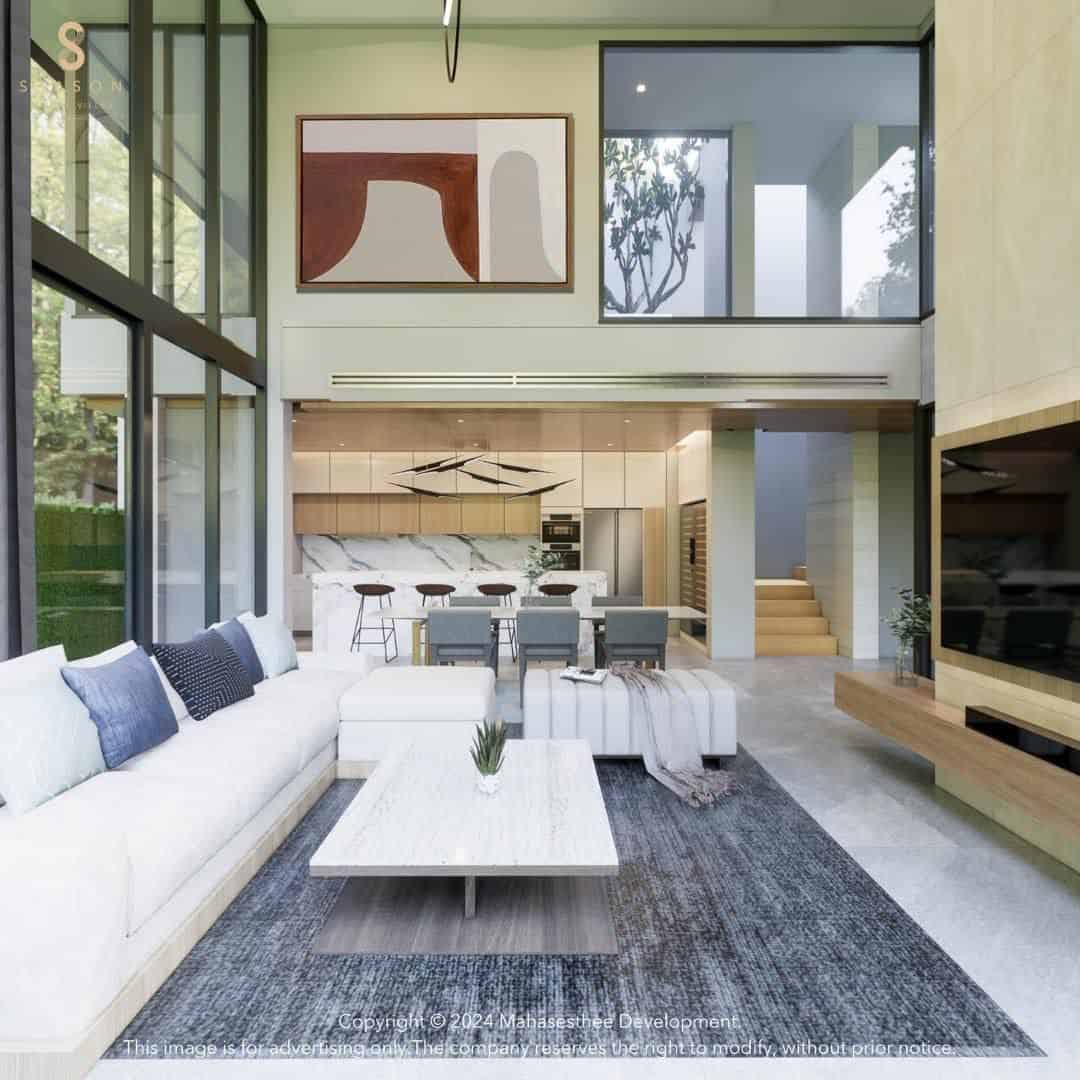 Each villa at Season Rosewood showcases stunning contemporary architecture, highlighted by large windows that flood the interiors with natural light. The thoughtful design includes spacious two-story layouts, private balconies, and inviting outdoor seating areas, making it an ideal setting for relaxation and entertaining guests. Experience the beauty of your landscaped surroundings from the comfort of your own home.