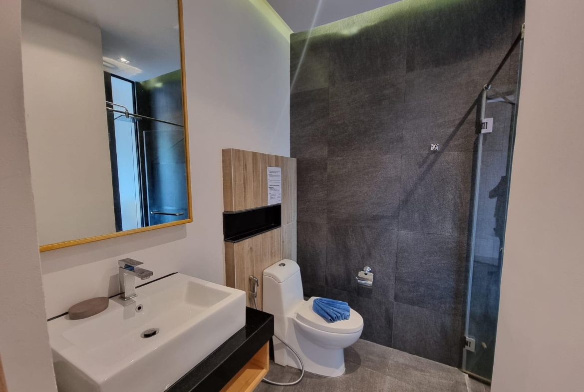 The condo features a modern layout with a fully equipped kitchen and a private balcony, offering breathtaking views and cool sea breezes. Residents can indulge in leisurely days by the pool, workouts in the fitness center, or sunset gatherings on the rooftop terrace.
