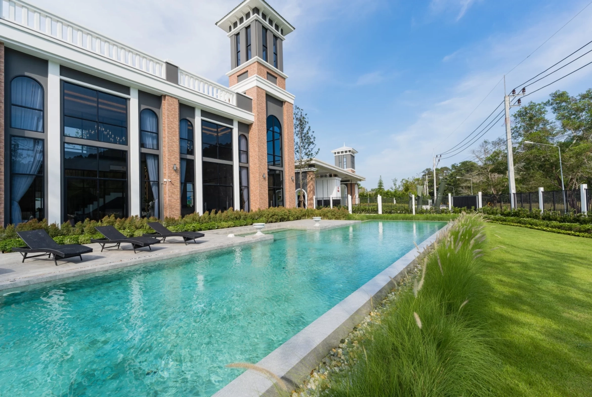 Crown Estate in Koh Kaew is perfectly positioned for families, being just a short stroll or a few minutes’ walk from the British International School Phuket. This makes it an excellent choice for those with children attending the school. Additionally, the Royal Phuket Marina and Boat Lagoon, which boast a variety of supermarkets and dining options, are just a 5-minute drive away. Golf lovers will appreciate the proximity to the esteemed Loch Palm and Red Mountain Golf Courses, only 15 minutes by car. The vibrant Phuket Town, known for its shopping centres and international medical facilities, is reachable in about 15 to 20 minutes by car. For those traveling further, Phuket International Airport is a convenient 40-minute drive from the estate.