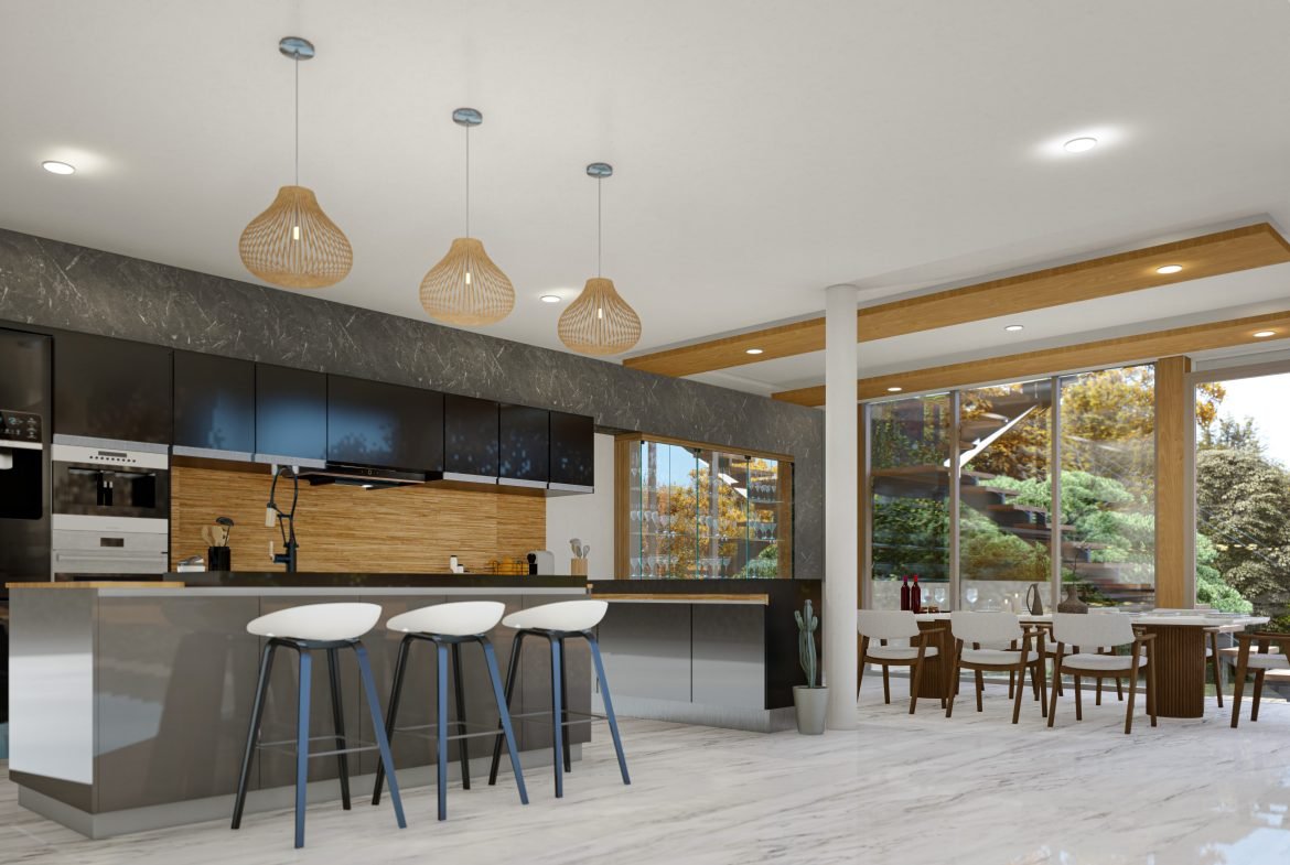 Upon entering the villa, you will be instantly captivated by the spacious and well-ventilated interiors, designed to capture relaxing views and natural light. The open-plan living and dining area is the perfect spot to unwind after a day spent working or travelling. With numerous comfortable seats, a generously-sized dining table, and a fully equipped kitchen, preparing meals for your loved ones is a breeze.