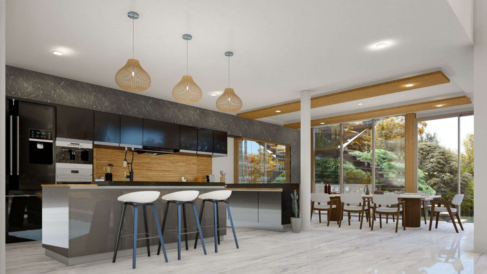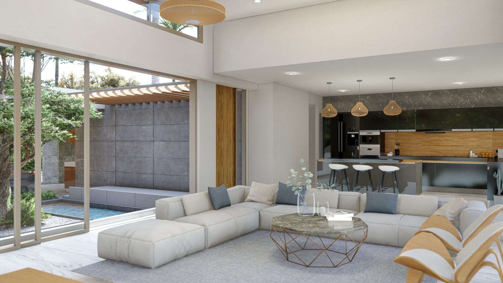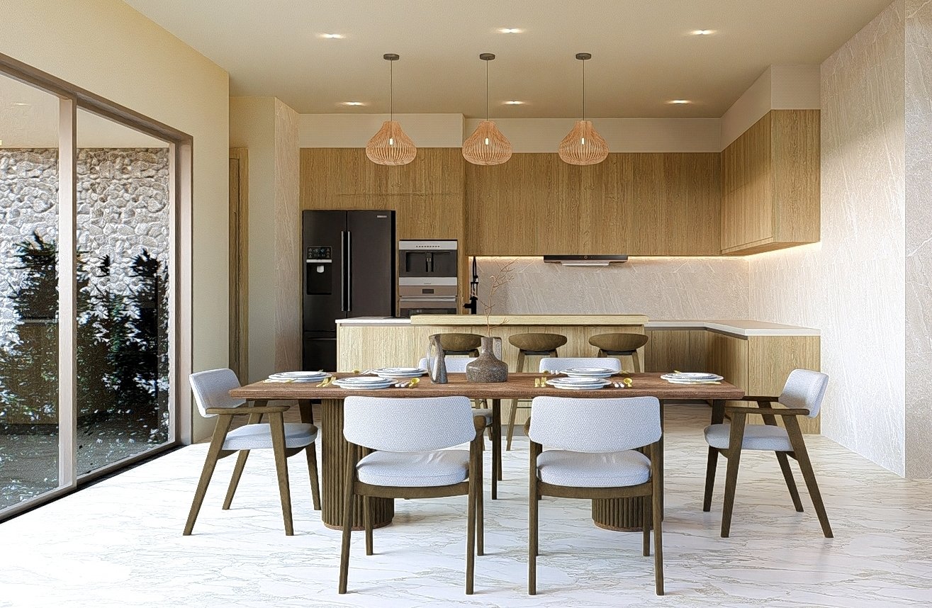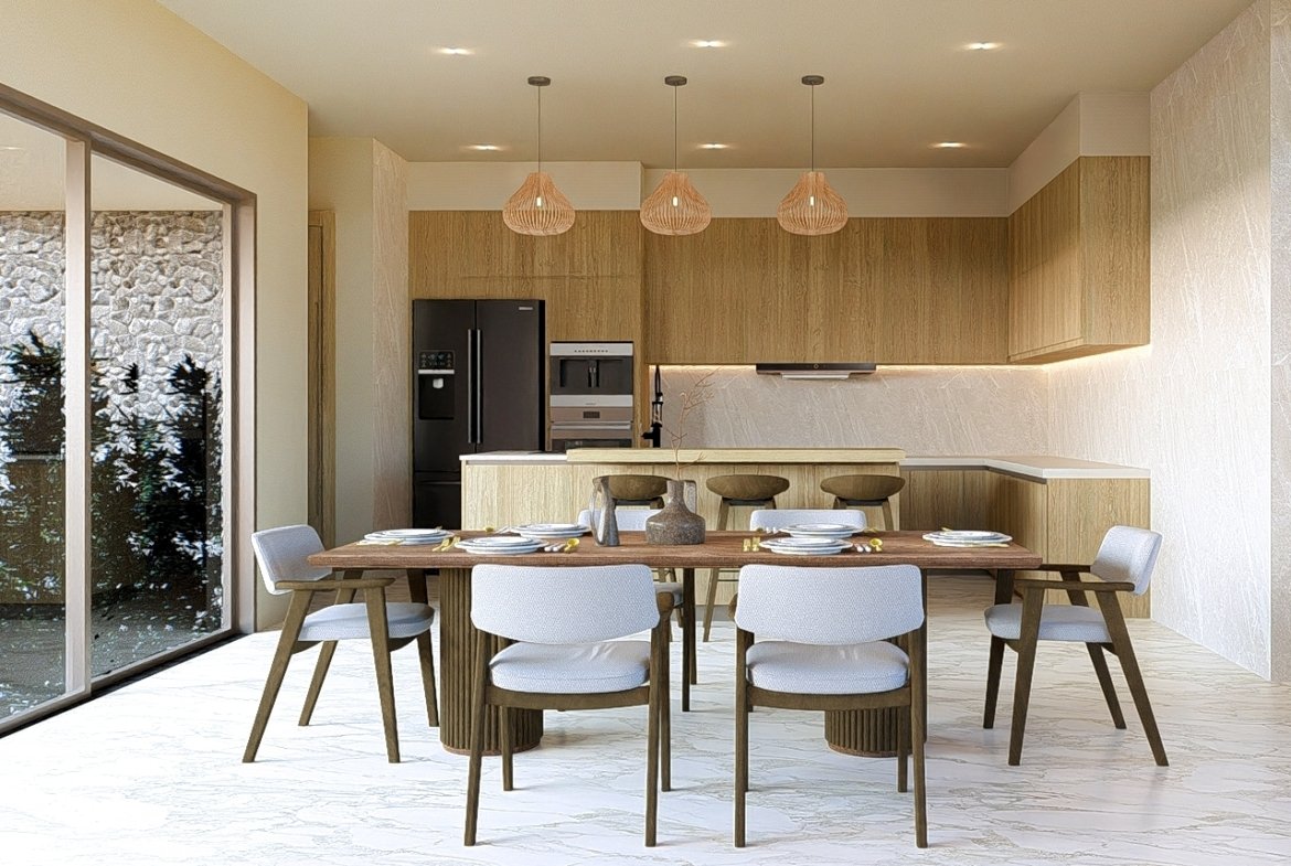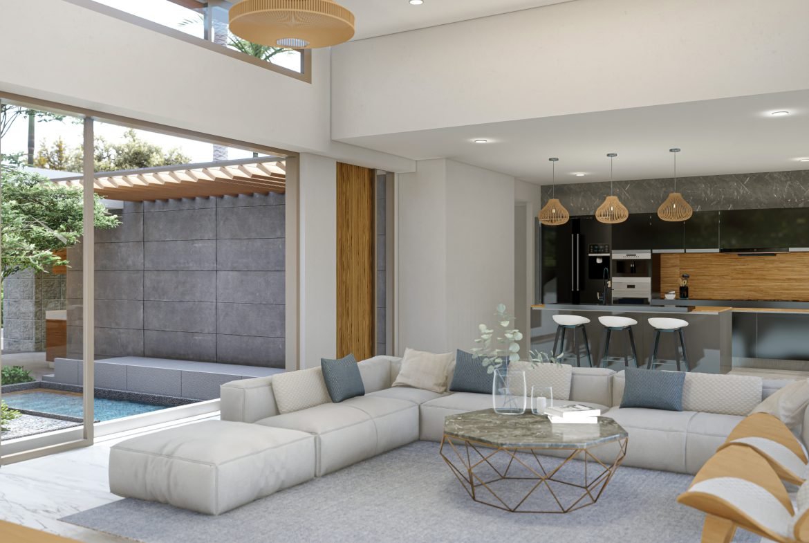 The villa is composed of modern 3 or 4 bedrooms, each with its own ensuite bathroom, ensuring that you and your guests will have ample privacy and room to move around. The bedrooms have been designed with your comfort in mind and a serene atmosphere that makes drifting into a peaceful slumber effortless. Outdoors is a good-sized private swimming pool that is surrounded by terraces and a courtyard plus rooftop sala in some larger units.