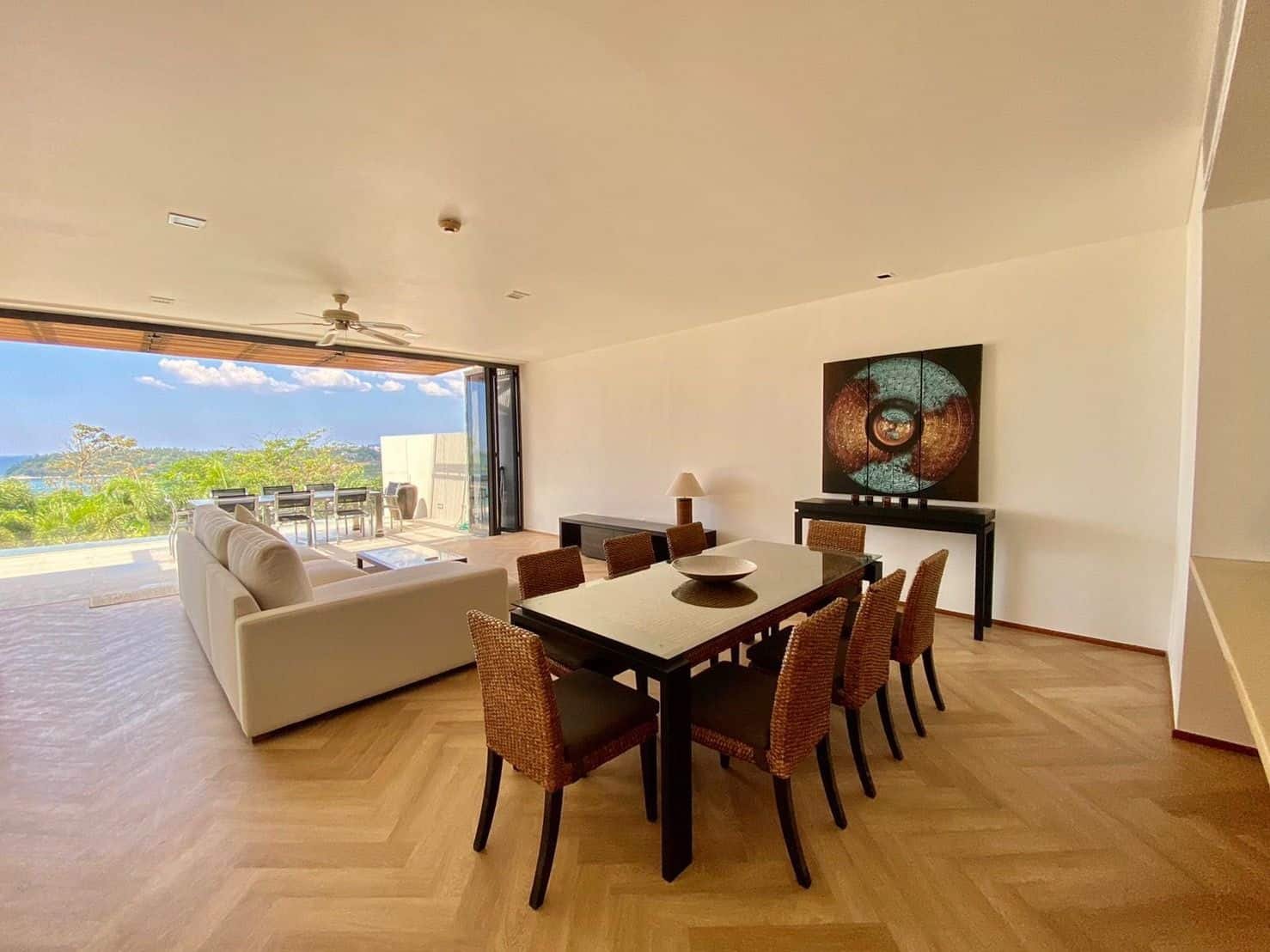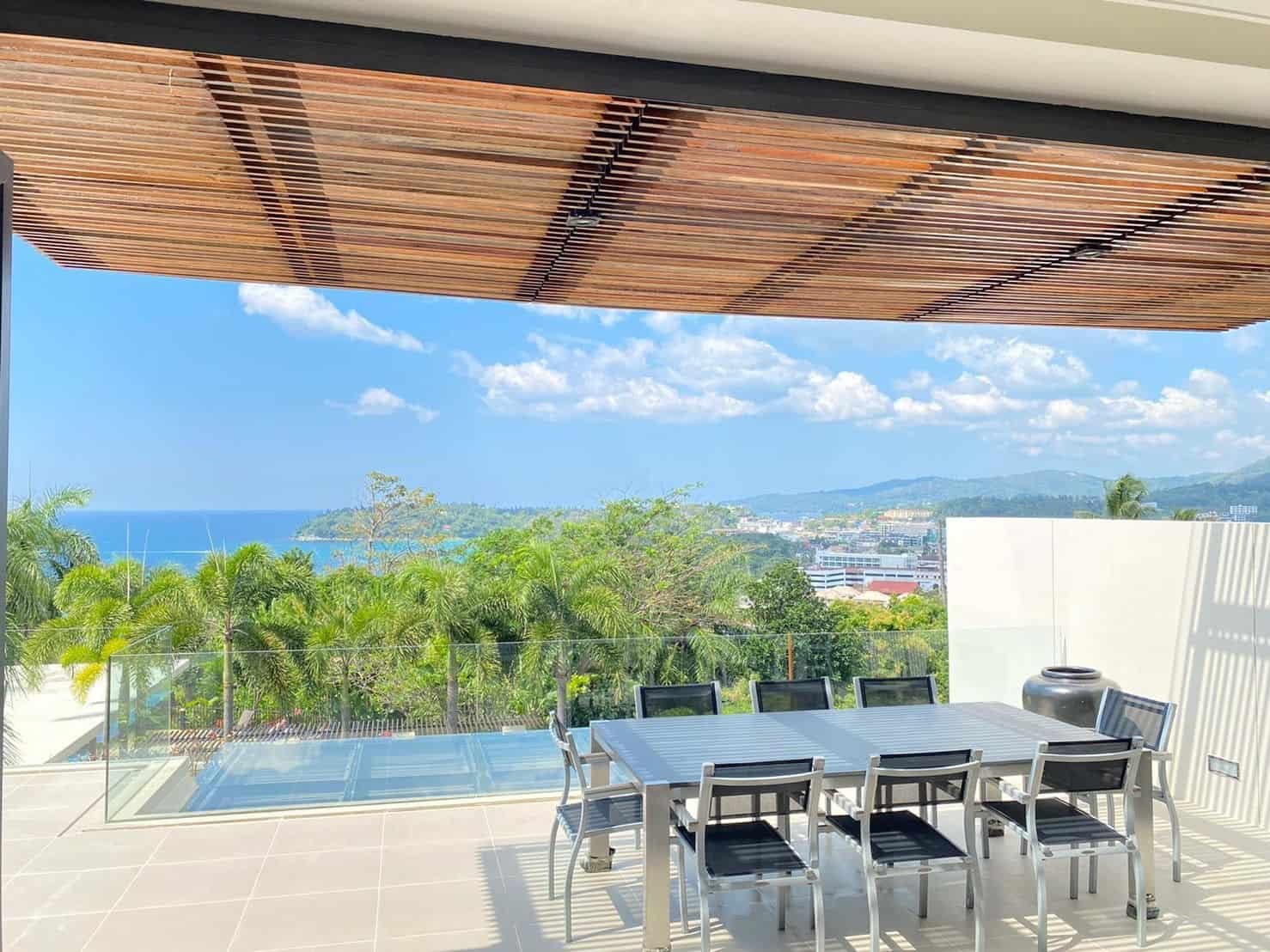 This stunning sea view condominium for sale consists of 2 bedrooms en-suite, a bathtub in the master bathroom, spacious living room, dining area, fully-equipped European-style kitchen, and a spacious balcony area overlooking Kata Beach and the mountains.