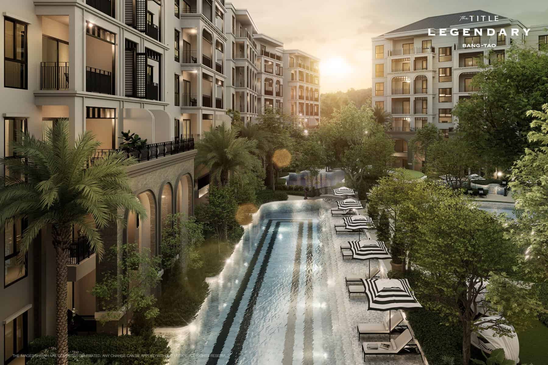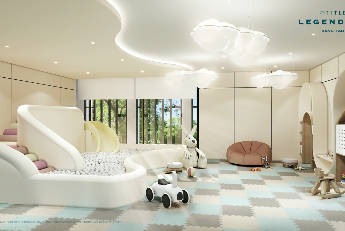 The Title Legendary Condos Bangtao will offer over 35 resort-like features to indulge in. Residents can enjoy everything from sprawling freeform swimming pools, a lap pool, and a fitness center, to a clubhouse, sauna, co-working space, kids club, and a library lounge. Plus, there’s a unique kids’ lagoon, shared kitchen, and dining areas that add to the communal charm of the place.