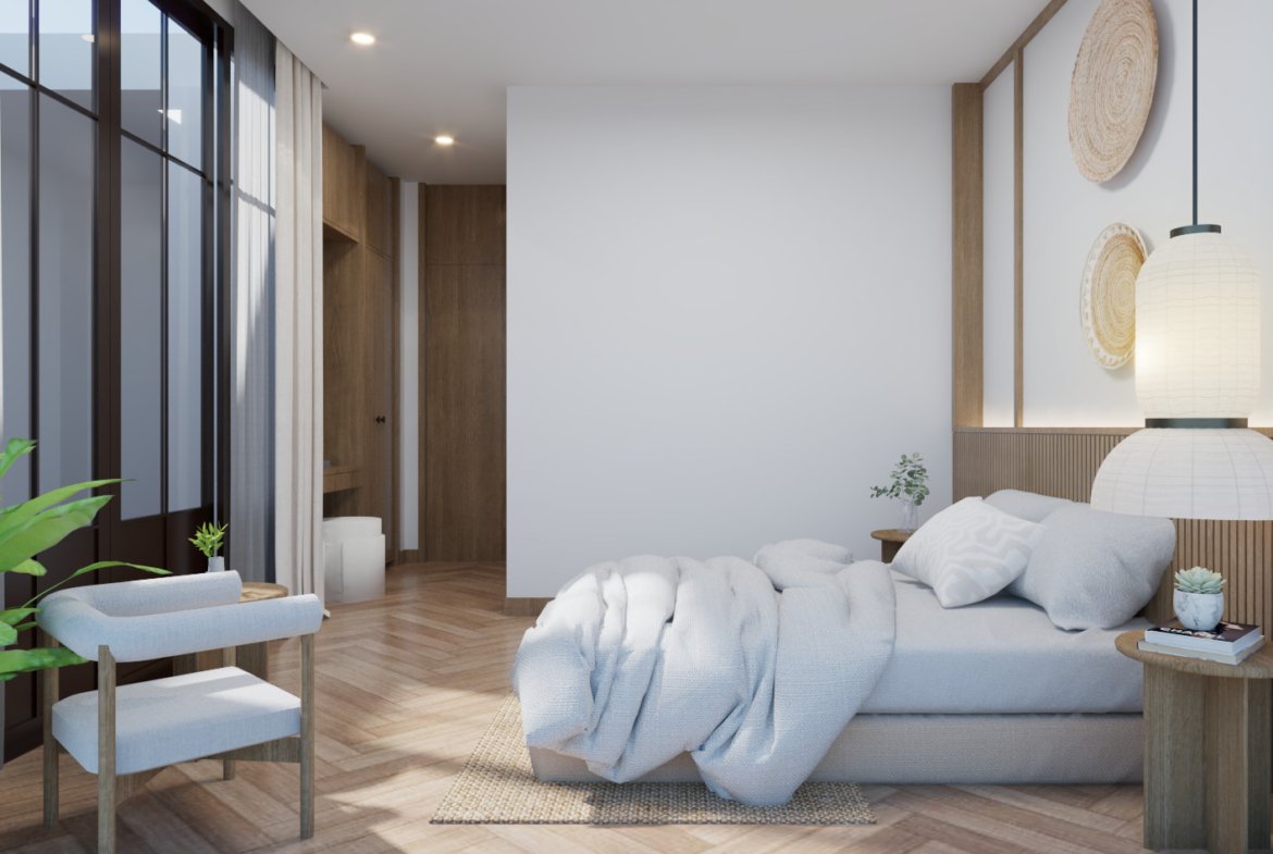 The villa features two elegant bedrooms, each with its own ensuite bathroom. The bedrooms are spacious and tastefully decorated, with high-quality furnishings and linens, ensuring a comfortable and restful stay. The master bedroom features a king-size bed, while the other two bedrooms have queen-size beds. All bedrooms have large windows that let in plenty of natural light and offer stunning views of the surrounding area.