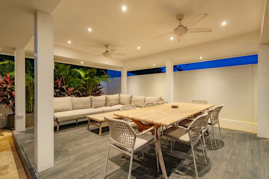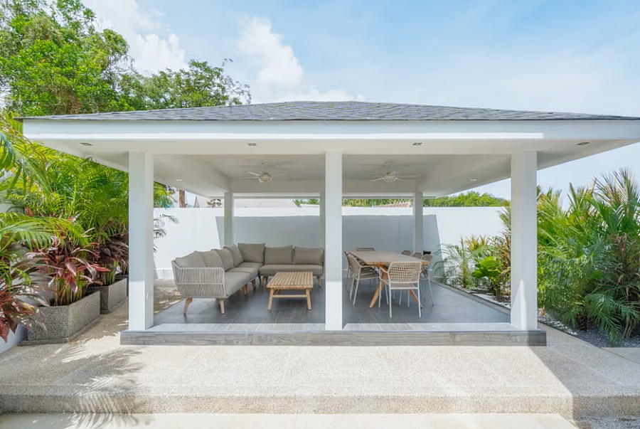 An expansive garden Sala, ideal for BBQs, entertaining, and al fresco dining.