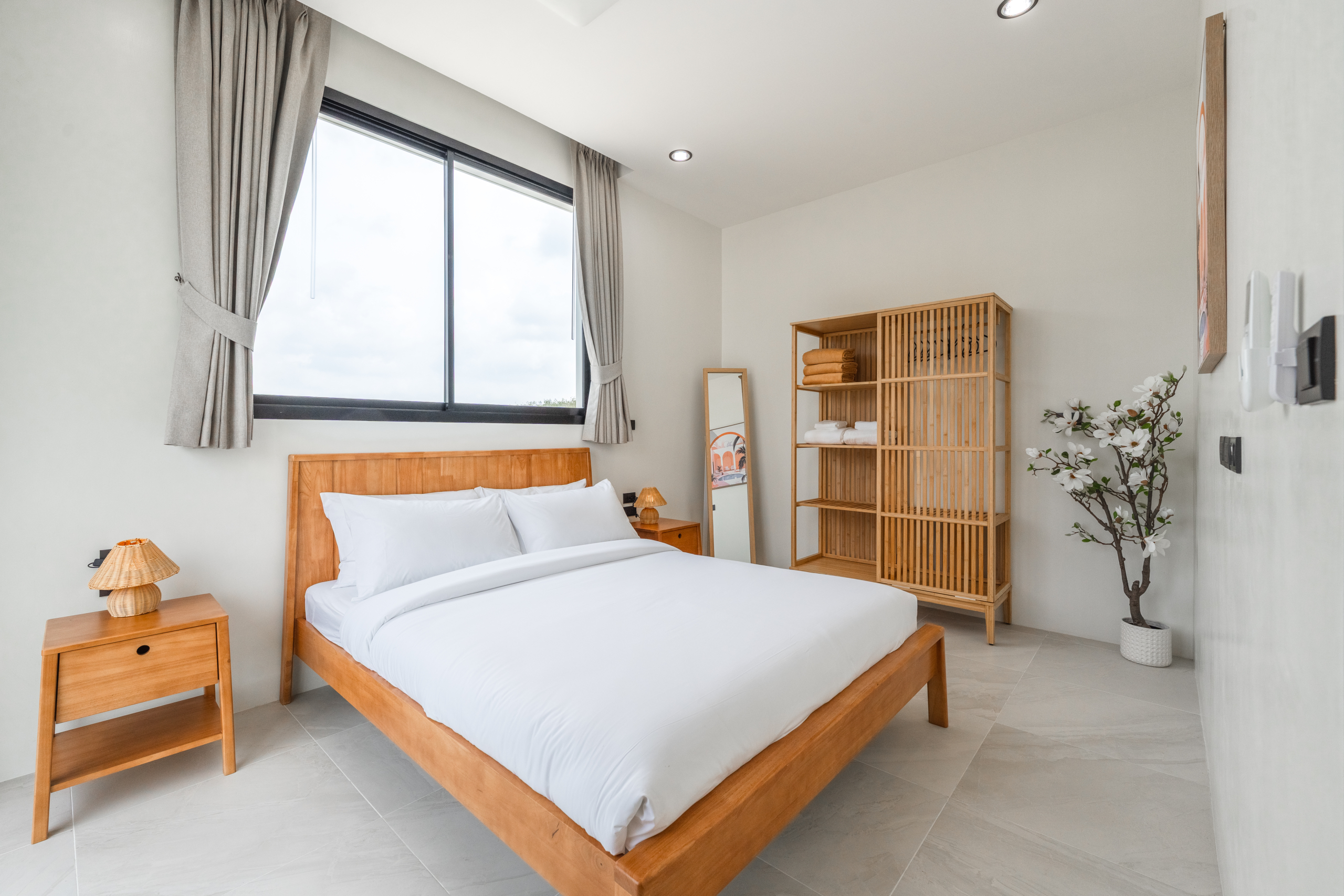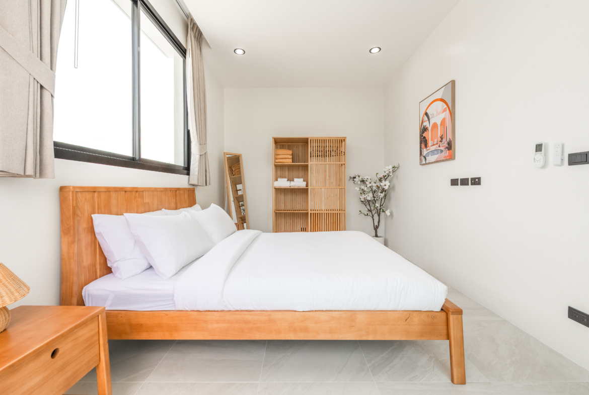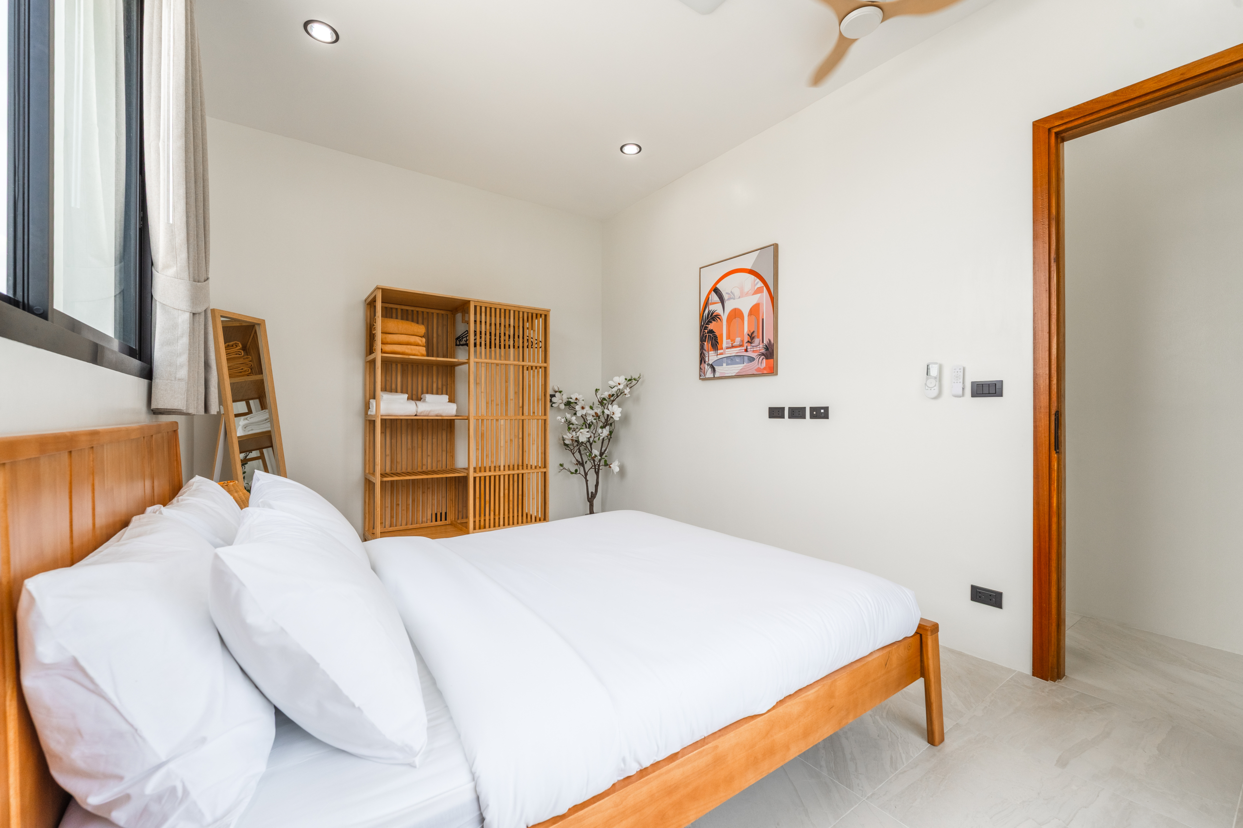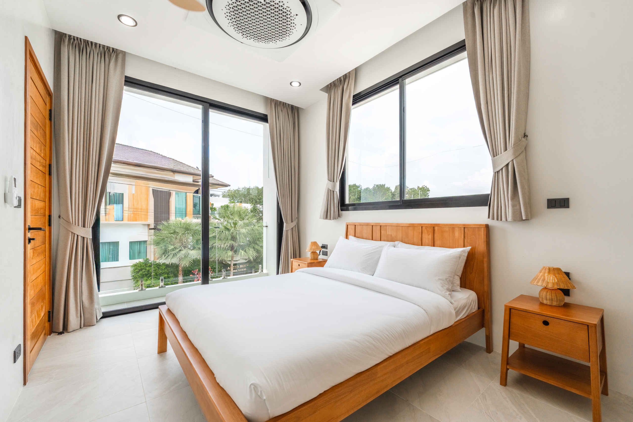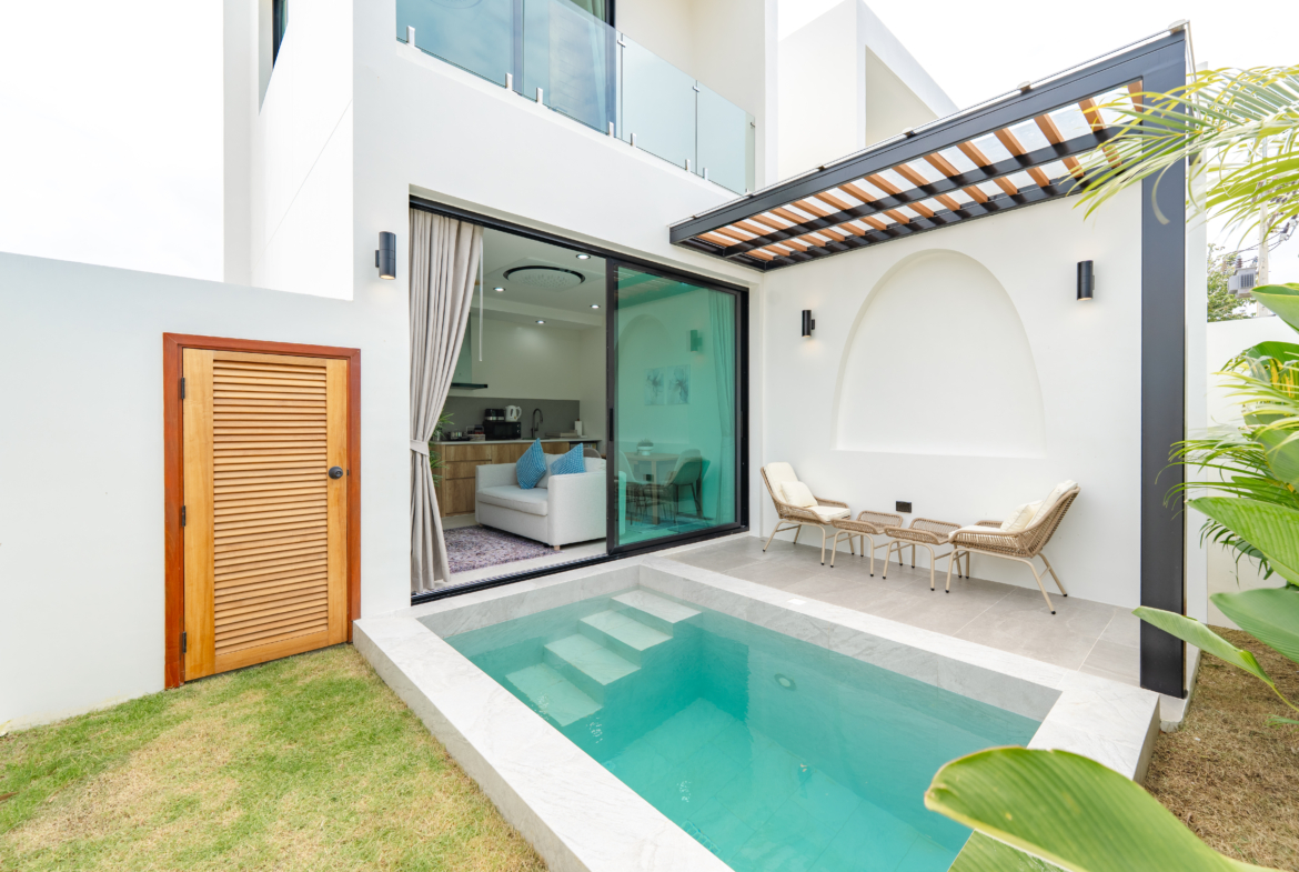 The villa includes one bedroom, one bathroom, a fully equipped kitchen, and an open-plan living and dining area. Designed for easy long-term living, the home offers a peaceful setting while remaining just minutes from Laguna, Boat Avenue, Bang Tao Beach, and local restaurants.