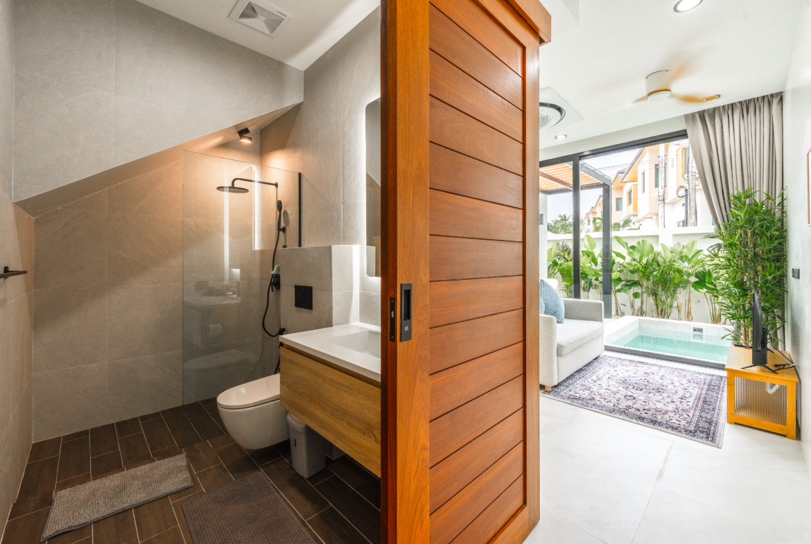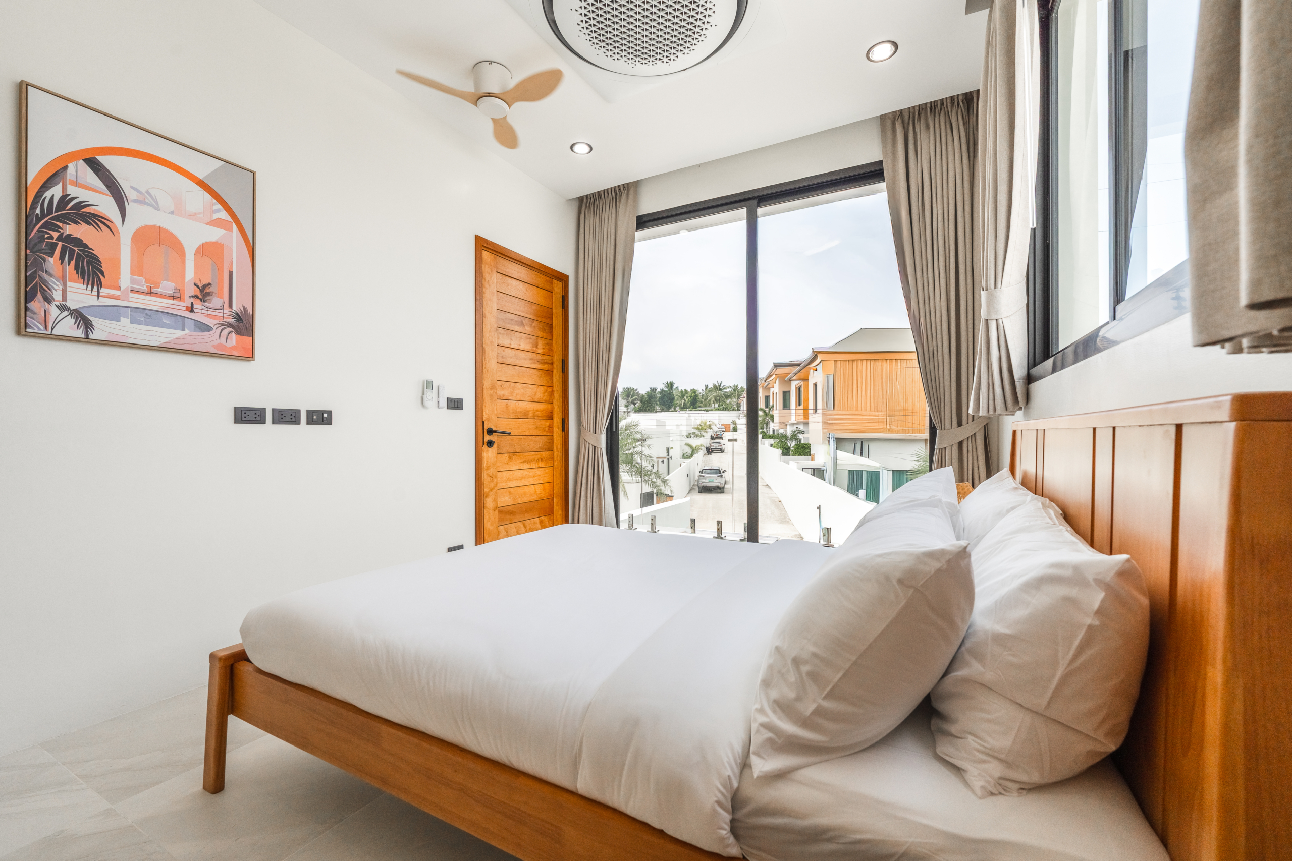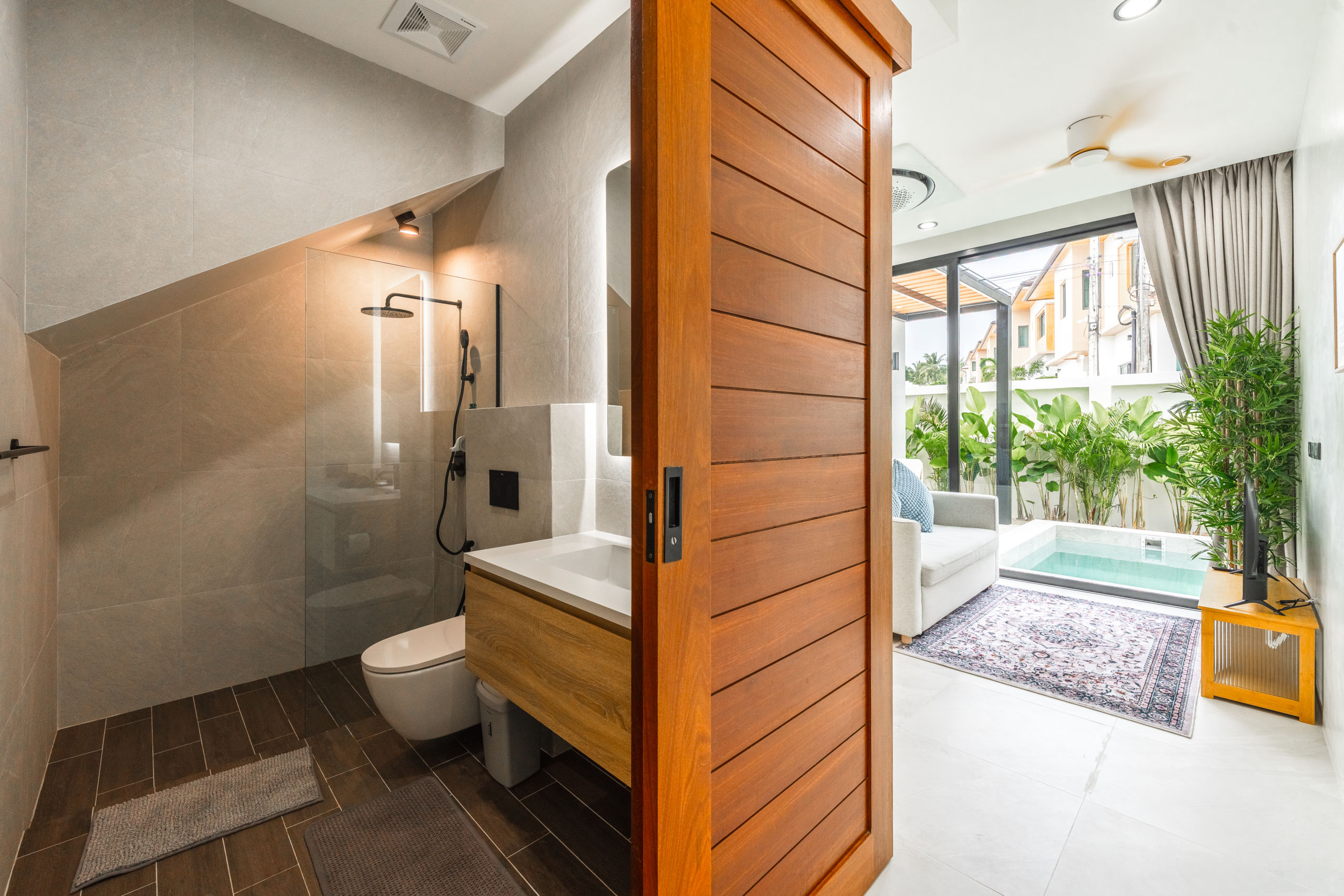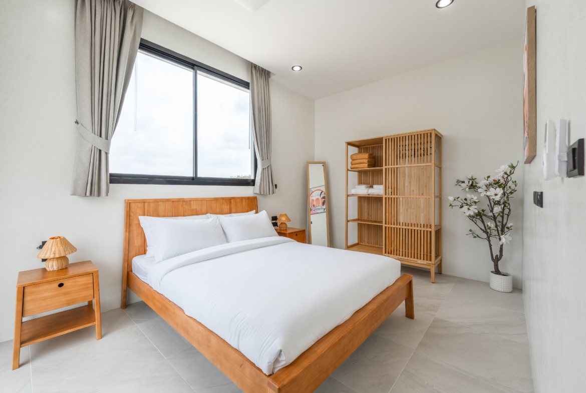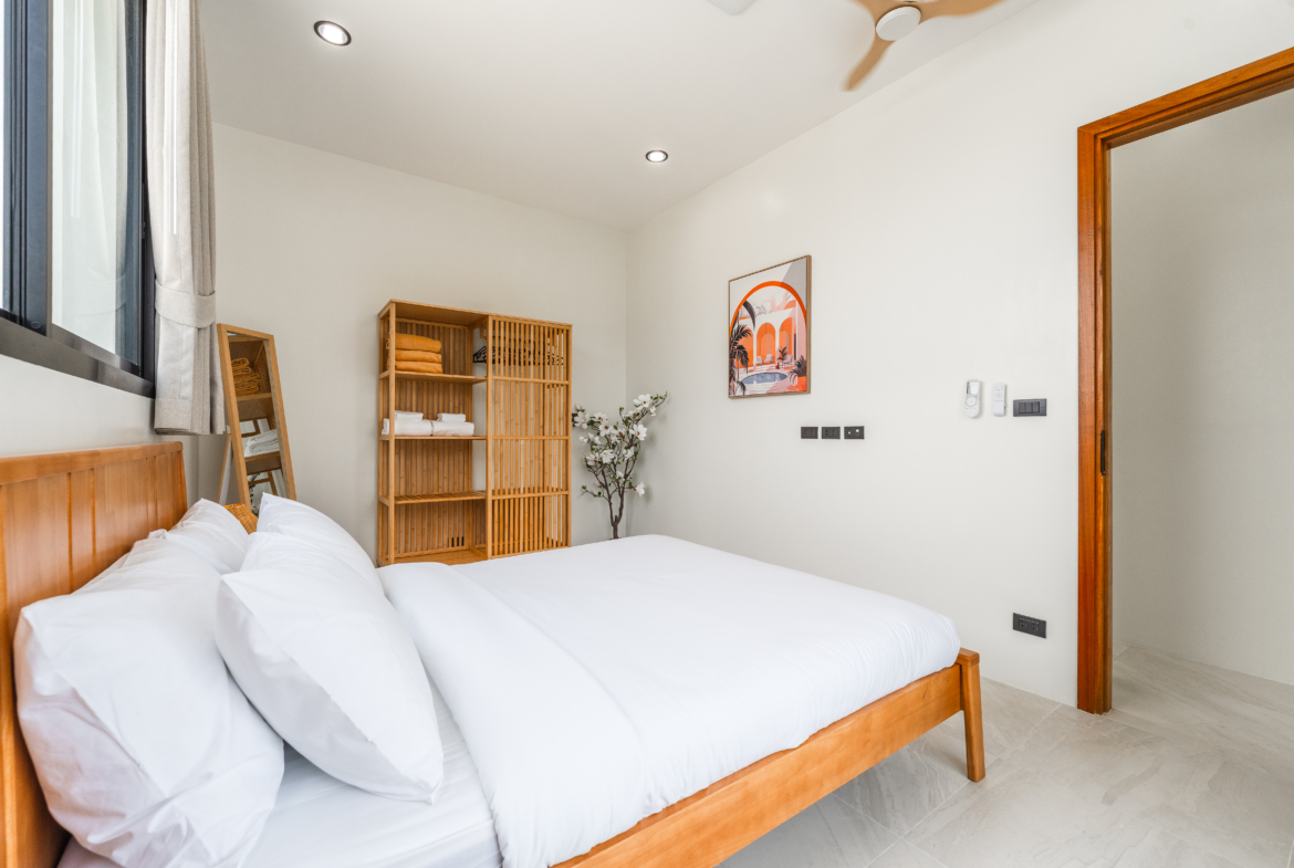 The villa includes one bedroom, one bathroom, a fully equipped kitchen, and an open-plan living and dining area. Designed for easy long-term living, the home offers a peaceful setting while remaining just minutes from Laguna, Boat Avenue, Bang Tao Beach, and local restaurants.