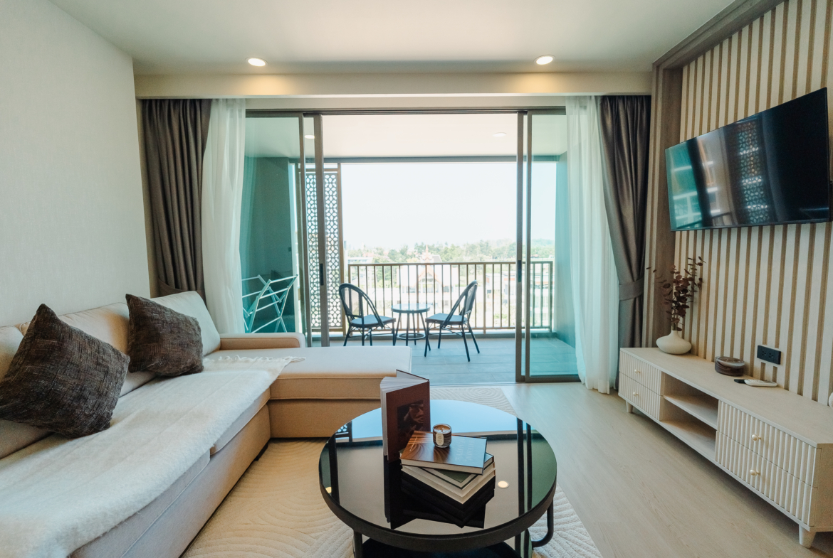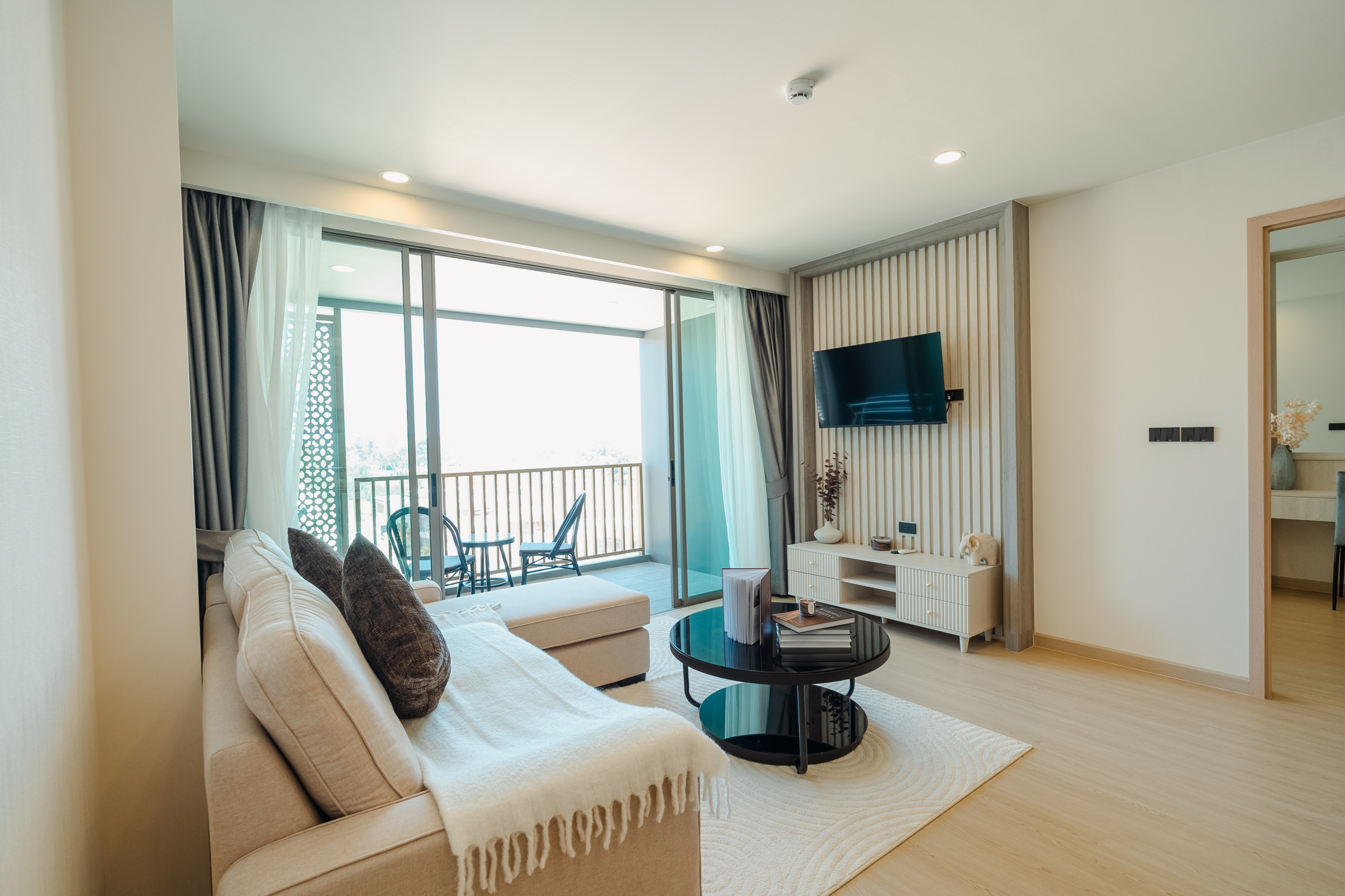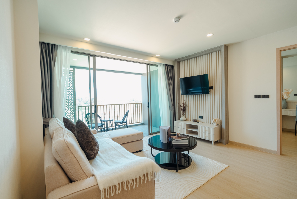 Located on the 7th floor of The Ozone Oasis Phase 2, this spacious 3-bedroom condominium offers stunning open views over Laguna Golf Course with beautiful sunset scenery. The 122 sqm layout features a bright open-plan living and dining area, modern kitchen, and a private balcony designed to maximize natural light and panoramic green views.