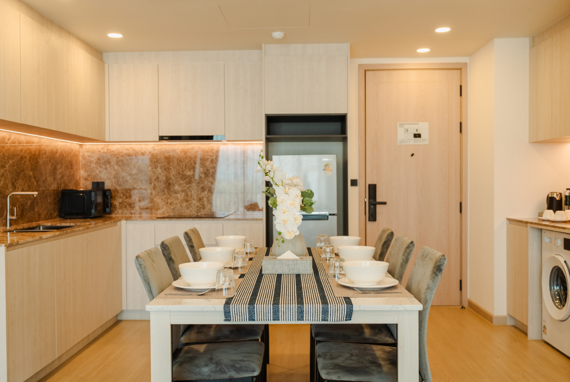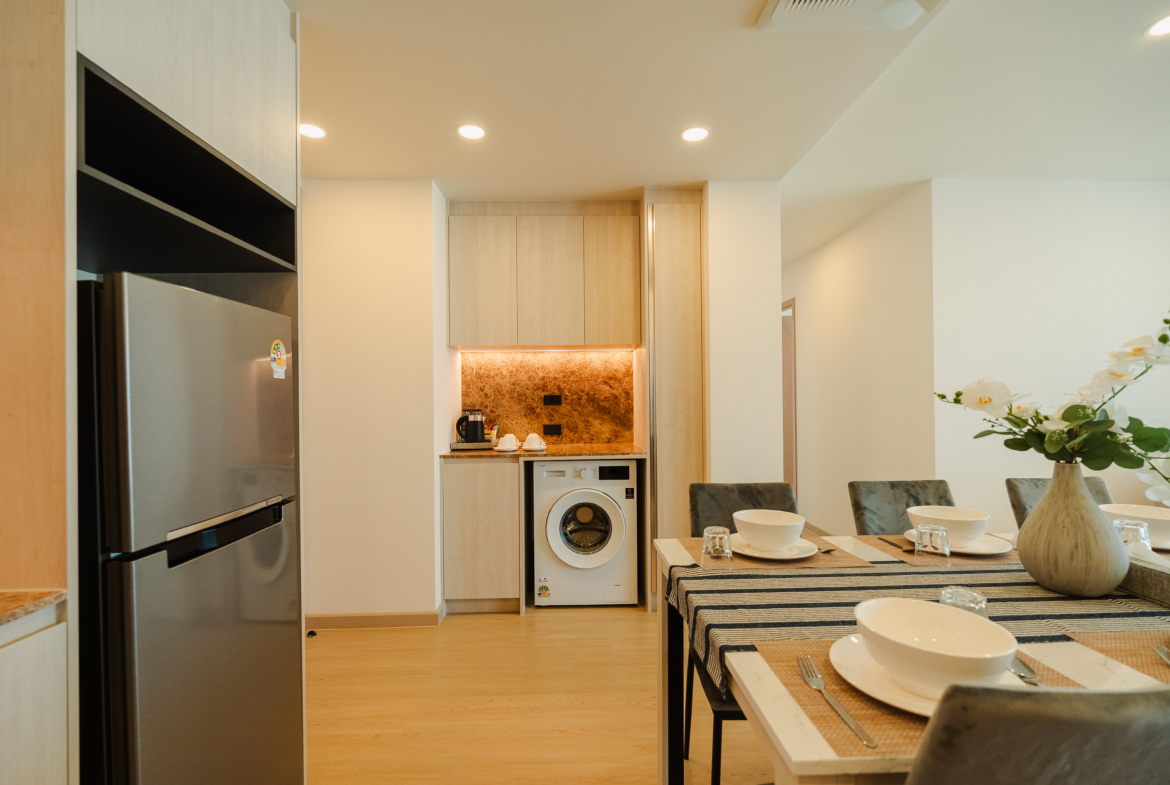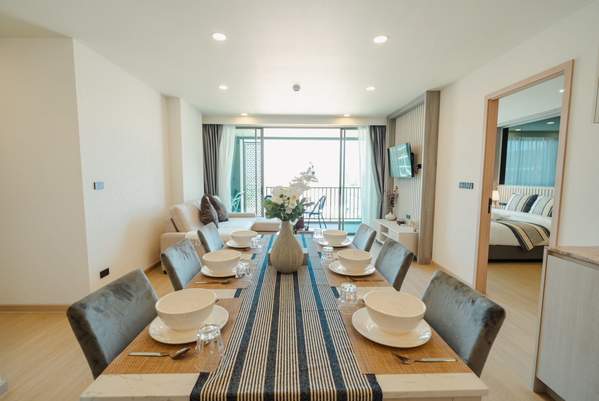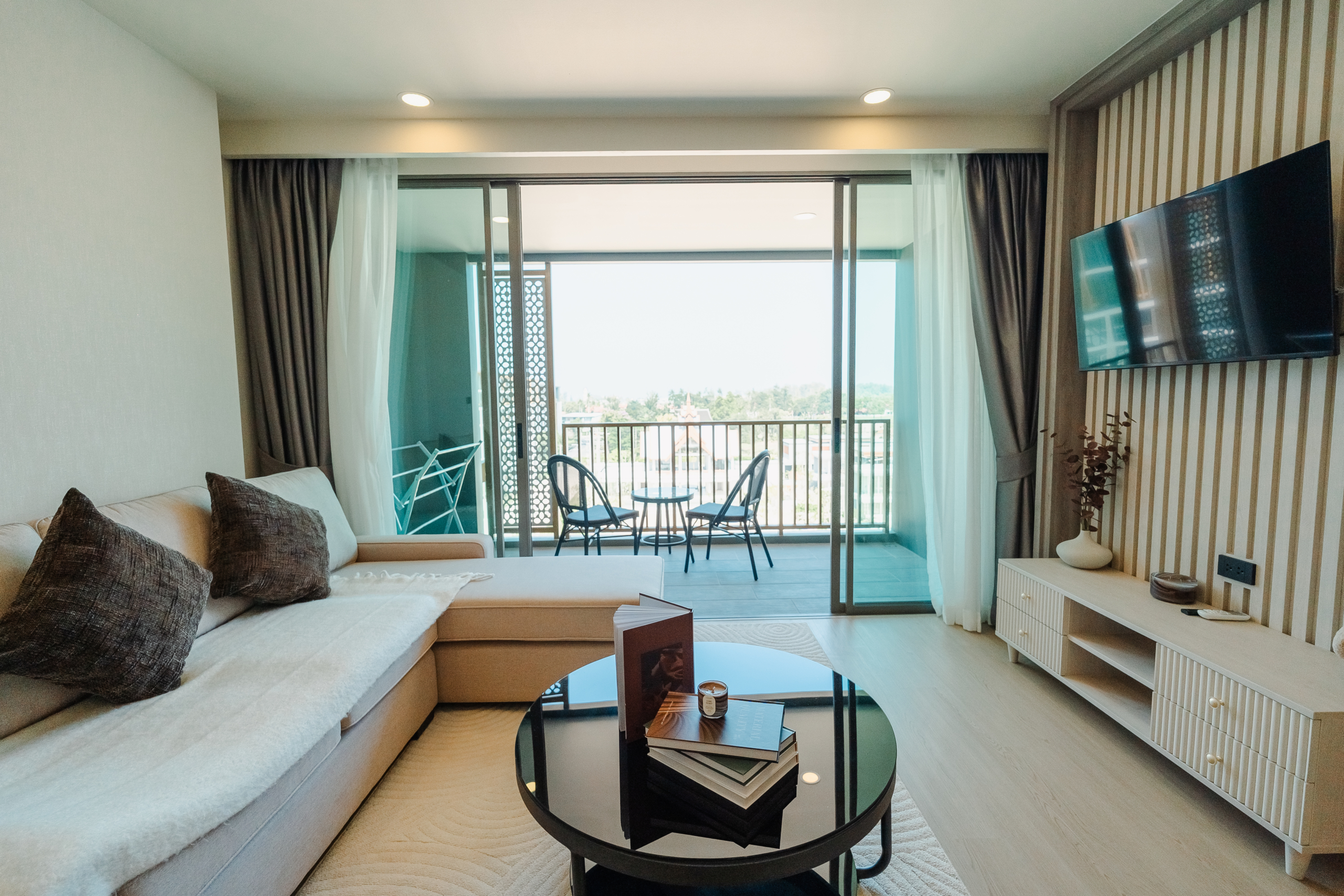 Located on the 7th floor of The Ozone Oasis Phase 2, this spacious 3-bedroom condominium offers stunning open views over Laguna Golf Course with beautiful sunset scenery. The 122 sqm layout features a bright open-plan living and dining area, modern kitchen, and a private balcony designed to maximize natural light and panoramic green views.