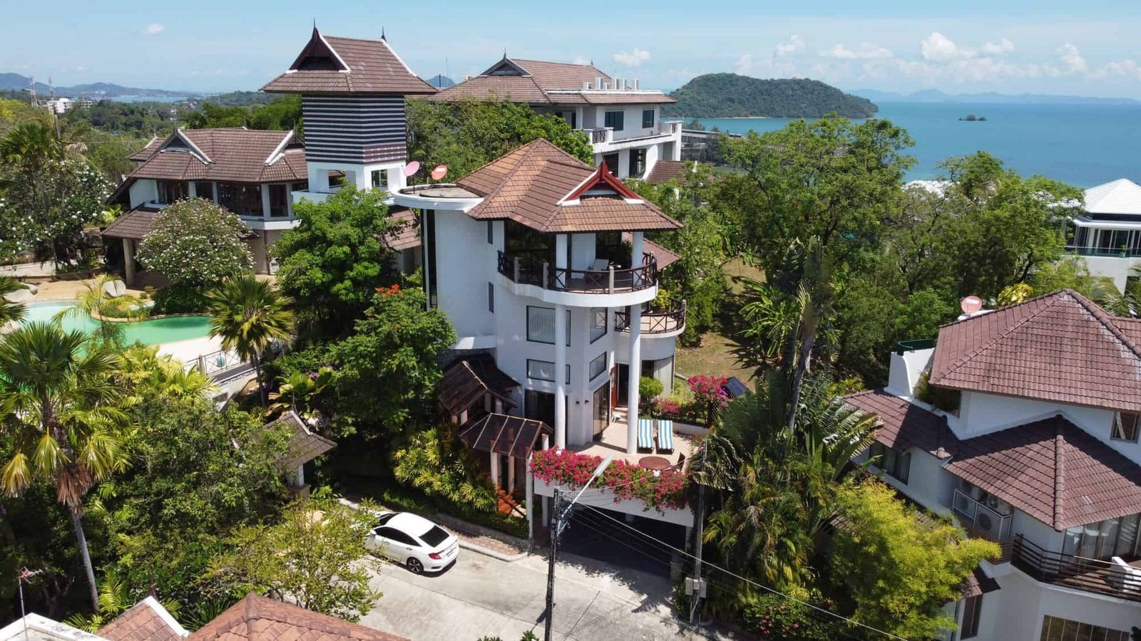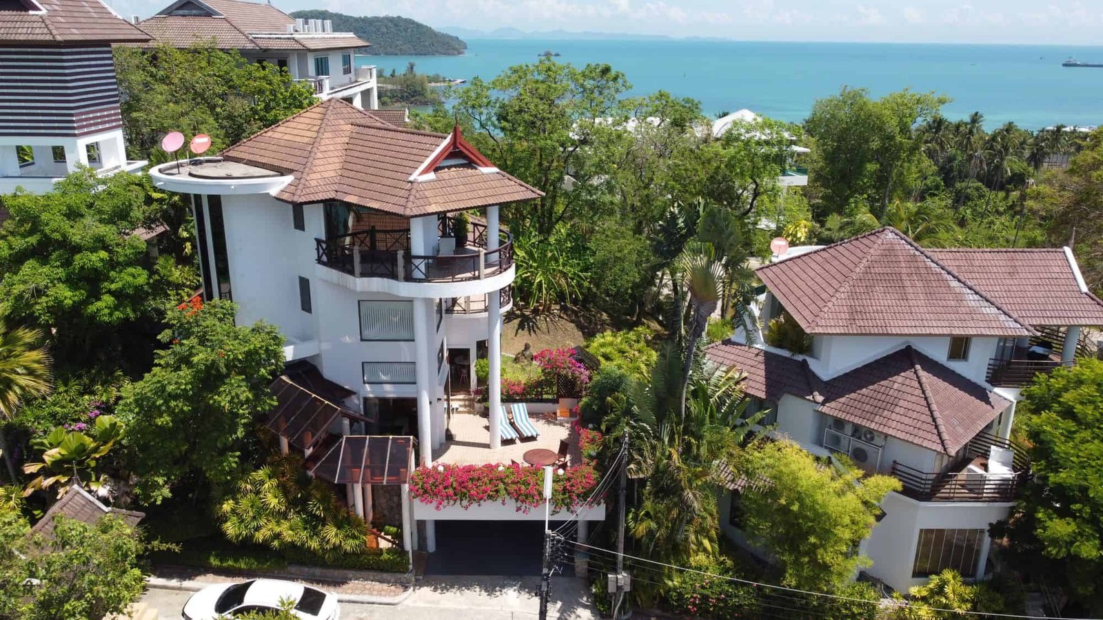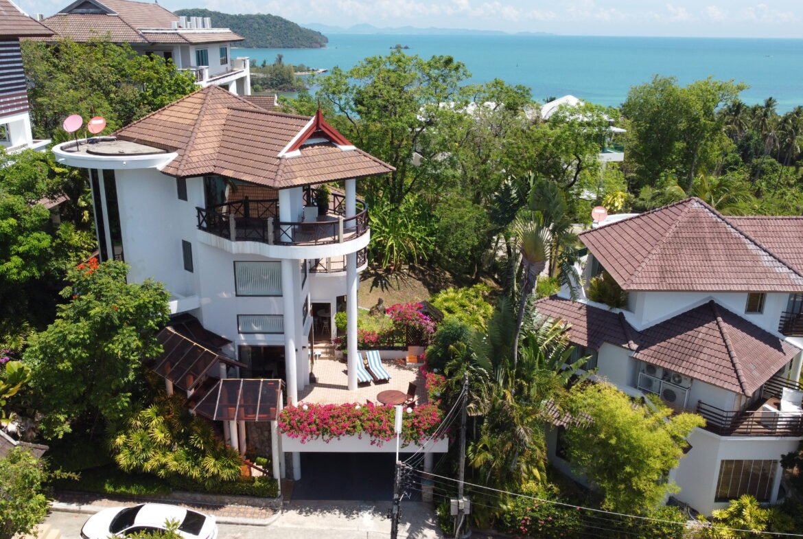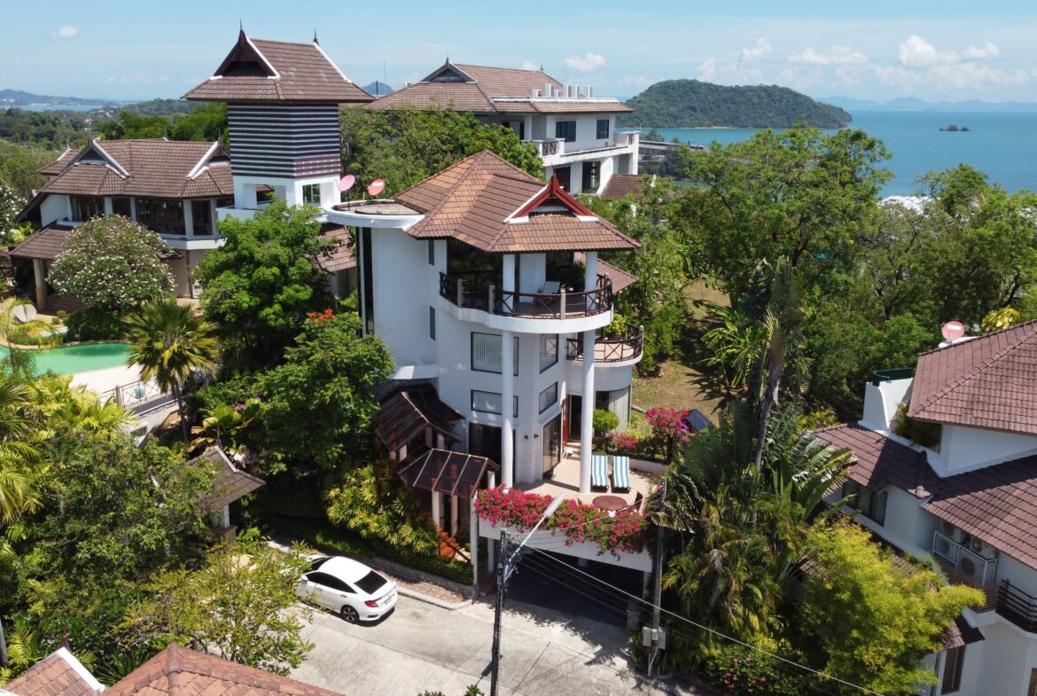 Amazing sea views from this four storey house for sale in Ao Yon, Phuket. Enjoy 280 degree panoramic views of Ao Yon Beach, Racha Islands and Phi Phi Island. All floors in this beautiful home has sea views with Ao Yon Beach to the southwest showcasing sunset views and the islands.